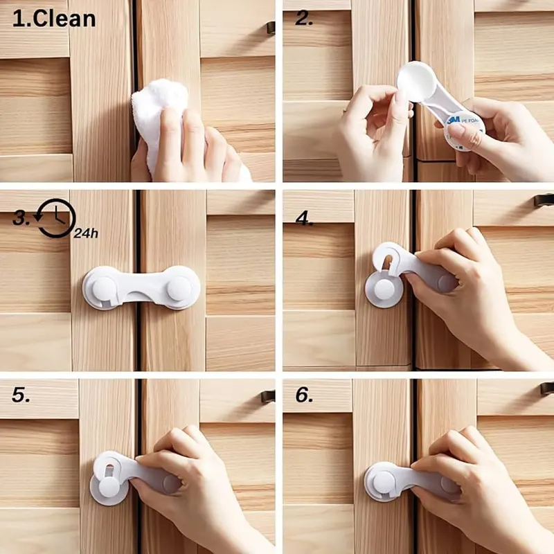 • মাল্টি-ইউজ সেফটি লক — ফ্রিজ, ড্রয়ার, ওয়ার্ডরোব, টয়লেট সিট, ওভেন, উইন্ডো, ফার্নিচারসহ যেকোনো জায়গায় ব্যবহারযোগ্য।